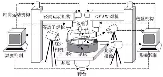 目前大型金屬3D打印制造技術(shù)主要有:激光同軸送粉打印工藝、電子束熔化和電弧增材制造技術(shù)等。