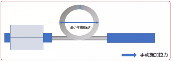 在光纖激光器系統(tǒng)中,光纖除了受到拉力,經常需要進行彎曲,因此光纖的最小彎曲半徑也是衡量光纖強度的一個重要指標,因此我們對刻蝕后的光纖進行了最小彎曲半徑測。光纖一端固定,將光纖打盤成光纖環(huán),通過施加拉力將光纖環(huán)不斷縮小,直至光纖斷裂,記錄光纖斷裂時的光纖環(huán)直徑,即為最小彎曲直徑。