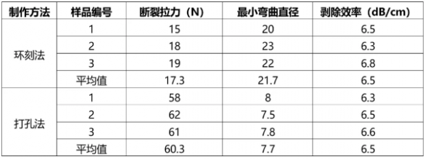 表1、1.5cm環(huán)刻法剝除器測試結果