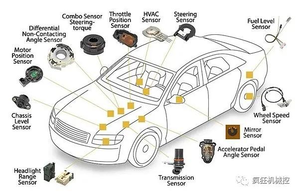 汽車傳感器是汽車計(jì)算機(jī)系統(tǒng)的輸入裝置,它的作用是把汽車運(yùn)行中各種工況信息,如車速、各種介質(zhì)的溫度、發(fā)動(dòng)機(jī)運(yùn)轉(zhuǎn)工況等,轉(zhuǎn)化成電信號(hào)輸給計(jì)算機(jī),以便汽車處于最佳工作狀態(tài)。例如氧傳感器、胎壓傳感器、水溫傳感器、電子油門踏板位置傳感器等等。
