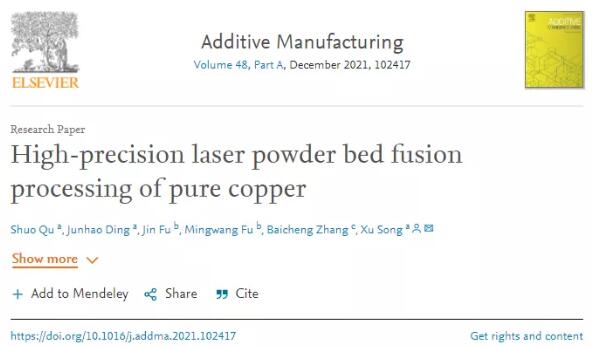 香港中文大學(xué)研究團(tuán)隊在在增材制造頂刊Additive Manufacturing發(fā)表了研究論文,題為“High-precision laser powder bed fusion processing of pure copper”。在這一研究中,研究團(tuán)隊開發(fā)了一種具有小激光光斑 (25 μm)、細(xì)粉(5-25 μm) 和小層厚 (10 μm)的高精度 LPBF (hp-LPBF) 系統(tǒng),可以實現(xiàn)全致密化在相對較低的激光功率下具有高分辨率和低粗糙度的純銅元件。