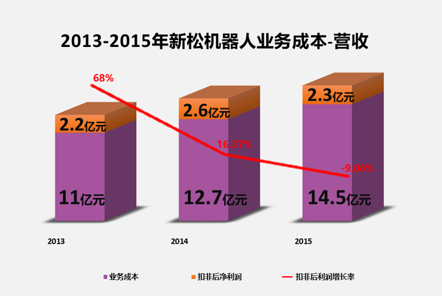 原因就在于減速機等核心技術的缺失,讓新松在2012-2016年復合增長率超過30%的市場環(huán)境中,利潤增速“開倒車”。
