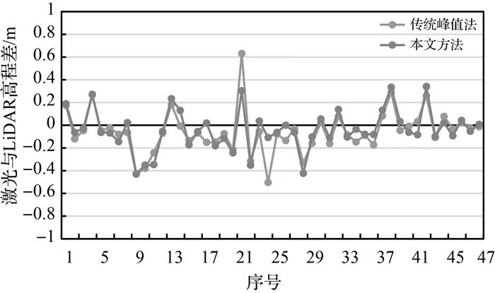 (3) 以平地地區(qū)高精度機載LiDAR點云為高程驗證數(shù)據(jù),本文方法相對一般峰值法提取的測距值,計算的激光高程絕對精度提升了4.5 cm。
