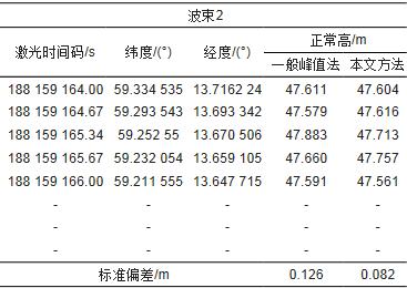 假設(shè)理想條件下,即激光測距無誤差、同一無風(fēng)浪湖面或冰面上的激光測高應(yīng)該完全一致。因此,激光在冰面或無風(fēng)浪湖面的高程相對偏差直接大致可以反映出星載激光測高儀測距精度。結(jié)合表 3冰面的試驗結(jié)果分析,由表 1中可以看出,相對于一般峰值法,基于本文方法提取的激光測距精度提升了7.5 cm。