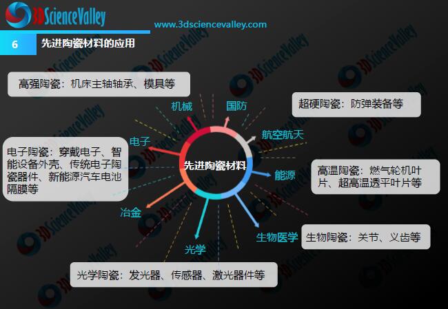 2017年-2021年, 是基于光固化的陶瓷3D打印在航空、醫(yī)療領(lǐng)域得到應(yīng)用發(fā)展的五年。同樣是在這五年中,粘結(jié)劑噴射3D打印技術(shù)在模具、鑄造型芯制造中的應(yīng)用得到加強,陶瓷3D打印企業(yè)發(fā)力于生產(chǎn)級的陶瓷3D打印系統(tǒng)與材料的研發(fā),同時更低成本與更高精度的3D打印技術(shù)進入市場。隨著陶瓷增材制造技術(shù)與材料技術(shù)的繼續(xù)發(fā)展,基于光固化、粘結(jié)劑噴射、材料擠出3D打印技術(shù)的應(yīng)用將得到不同程度的加強,應(yīng)用領(lǐng)域預(yù)計將擴展至汽車、牙科、能源、電子等更多領(lǐng)域。