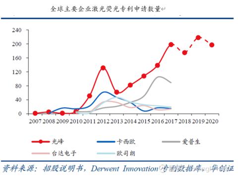 電影放映機(jī)對(duì)顯示的要求最高,被譽(yù)為顯示領(lǐng)域的珠穆朗瑪峰。目前激光光源放映機(jī)占到了總量的 44% 左右。其中,光峰的 ALPD 放映機(jī)市占率在 60% 左右,處于相對(duì)壟斷地位。