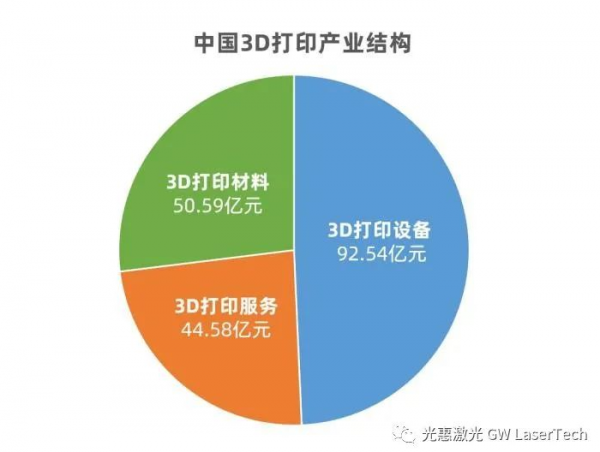 3D打印涵蓋設(shè)備、材料以及服務(wù)三個方面,其中打印設(shè)備占大頭。根據(jù)CCID發(fā)布的數(shù)據(jù)顯示,2020年中國3D打印設(shè)備產(chǎn)業(yè)規(guī)模92.54億元,占比最高。