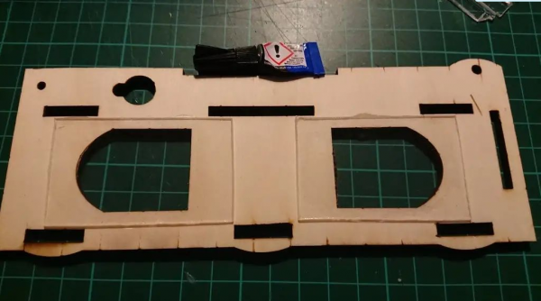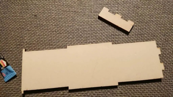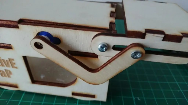 我用激光切割機制作了木制版的捕鼠器。我試圖設(shè)計最佳的盒子。在這里您可以看到外殼是如何組裝在一起的。對于窗戶,我使用了 CD 盒的亞克力部分。