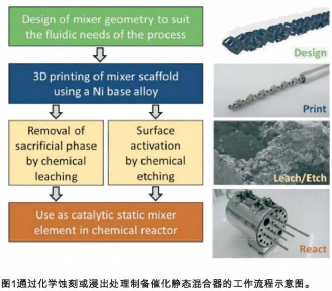 澳?利亞的研究人員開發(fā)了制備3D打印結(jié)構(gòu)催化劑靜態(tài)混合器的新方法,蝕刻層是多孔的,但沒有顯著富集 Ni 或 Cr。在浸出和蝕刻過程中,處理都是局部的,并且對(duì)3D打印部件的滲透深度有限,同時(shí)會(huì)大大增加新形成的層內(nèi)的表面積和孔隙率,從而大大提高催化活性。