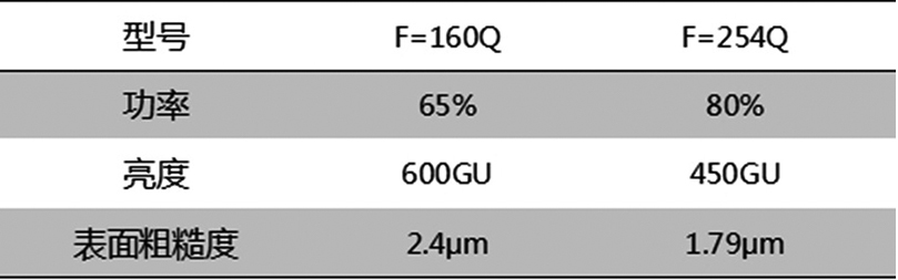 不同焦距的透鏡直接影響聚焦光斑的大小,透鏡焦距越大,聚焦光斑越大,光斑的能量密度越小。透鏡的主要配置選擇有F=160Qmm,F(xiàn)=254Qmm。透鏡大小影響打標的效果和參數(shù),透鏡越大,能量密度越小,需要打標的功率越大。從圖5所示的透鏡鐳雕效果而言,F(xiàn)=254Qmm透鏡打標后表面更為平整,但由于254透鏡打出亮度較低,且使用功率較大,不建議選擇大透鏡。