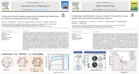 近期,天水師范學(xué)院機(jī)電與汽車工程學(xué)院教師劉博與蘭州理工大學(xué)省部共建有色金屬先進(jìn)加工與再利用國(guó)家重點(diǎn)實(shí)驗(yàn)室、金川鎳鈷資源綜合利用國(guó)家重點(diǎn)實(shí)驗(yàn)室合作的激光增材制造鎳基高溫合金孿晶界面調(diào)控研究取得重要進(jìn)展,研究成果連續(xù)發(fā)表在國(guó)際材料科學(xué)領(lǐng)域TOP期刊《Materials Science and Engineering A》(IF: 6.044/Q1)和國(guó)際工程技術(shù)領(lǐng)域TOP期刊《Additive Manufacturing》(IF:11.632/Q1)上,第一作者均為劉博老師。