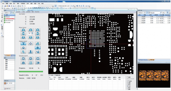 系統(tǒng)通開孔尺寸,位置等參數(shù)的測量,設(shè)定誤差范圍與參考值進行比較以判斷是否合格;點擊不良數(shù)據(jù),相機自動移動到該孔處,即可進行觀察及二次確認(rèn)。配置雙遠心透鏡持續(xù)掃描,標(biāo)準(zhǔn)PCB(240x180),測量速度為1s/FOV。