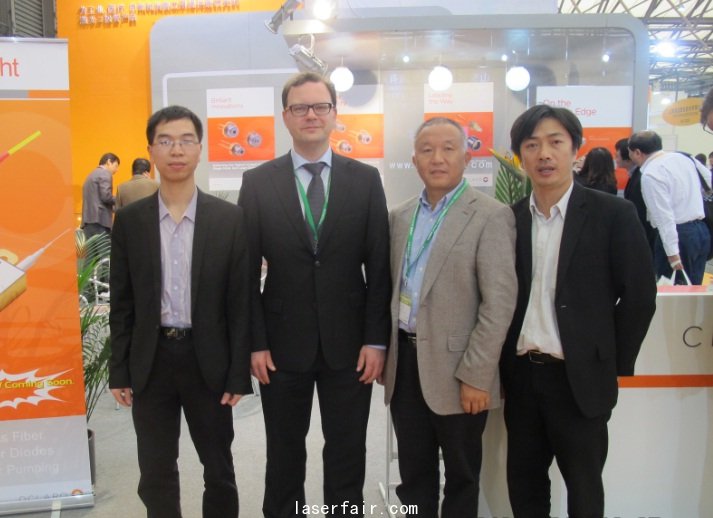Oclaro全球銷(xiāo)售副總裁Gunner Stolze(左二)接受《激光制造商情》采訪,并合影留念