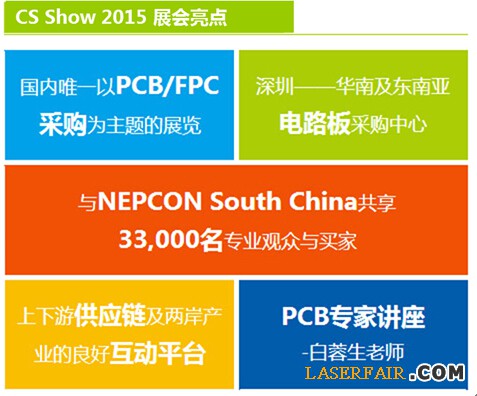 PCB作為電子信息產(chǎn)業(yè)鏈中的基礎(chǔ)組件,被譽(yù)為“電子產(chǎn)品之母”。將于2015年8月25日-27日在深圳會(huì)展中心6號(hào)館開啟的“2015深圳國(guó)際電路板采購(gòu)展覽會(huì)”(Shenzhen International Circuit Sourcing Show 2015,簡(jiǎn)稱CS Show),是國(guó)內(nèi)唯一一家以PCB/FPC采購(gòu)為主題的行業(yè)展會(huì)。對(duì)于所有關(guān)注電路板產(chǎn)業(yè)發(fā)展的制造企業(yè)和高品質(zhì)觀眾來(lái)說(shuō),CS Show 2015已成為年度PCB產(chǎn)品、人才、技術(shù)和市場(chǎng)溝通交流、拓展商機(jī)的絕佳平臺(tái),展示新產(chǎn)品、新技術(shù)將成為展會(huì)的主旋律,眾多業(yè)內(nèi)知名企業(yè)前來(lái)參展將為盛會(huì)召開增色不少。