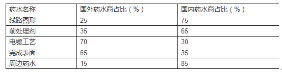 在整個(gè)PCB藥水的市場(chǎng),國(guó)內(nèi)廠目前市場(chǎng)占比狀況如下: