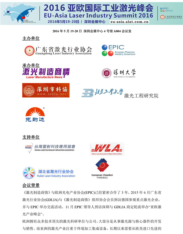 2016亞歐國(guó)際工業(yè)激光峰會(huì)邀請(qǐng)函