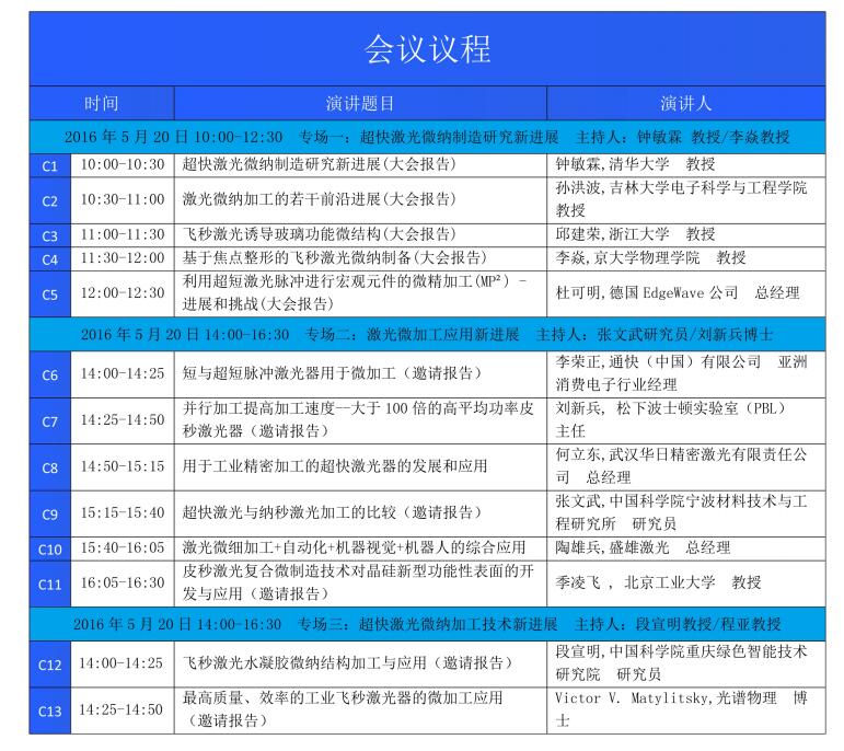 “ALAT 2016中國超快激光與微納制造大會(huì)”將包含4個(gè)主題: