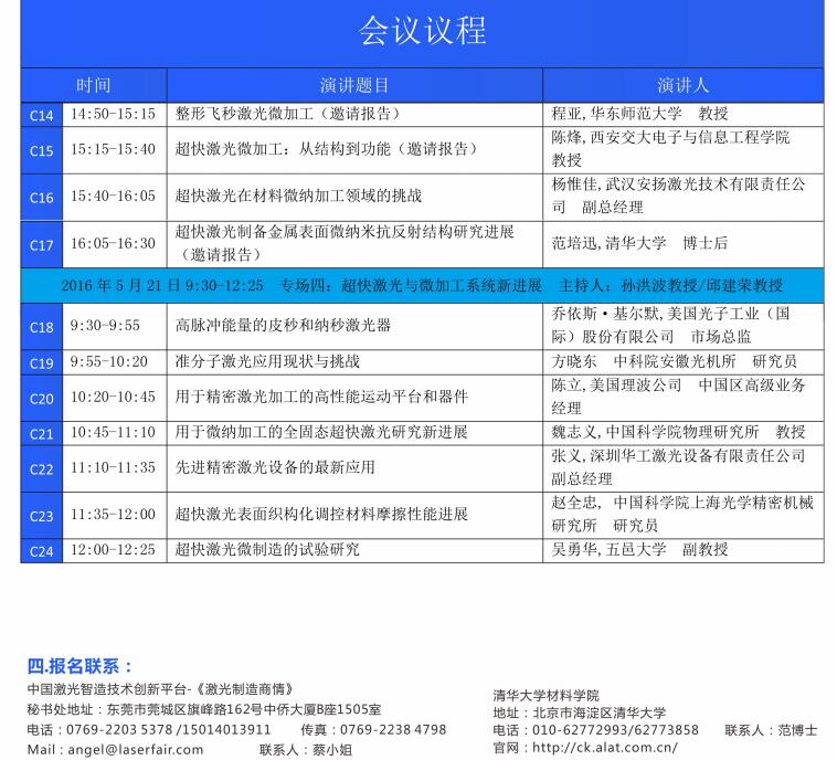 會(huì)議方向ALAT 2016中國超快激光與微納制造大會(huì)將包含4個(gè)主題:(1)超快激光微納制造研究新進(jìn)展;(2)激光微加工應(yīng)用新進(jìn)展;(
