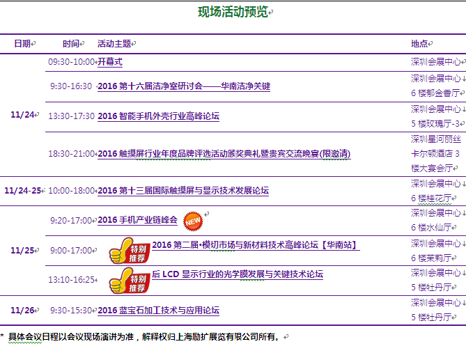 今年,上海勵(lì)擴(kuò)展覽有限公司還將邀請(qǐng)來(lái)自學(xué)術(shù)界和產(chǎn)業(yè)界的知名專(zhuān)家和專(zhuān)業(yè)人士為參會(huì)者提供包括建自觸摸屏制造、薄膜/膠粘帶、藍(lán)寶石、模切加工、電子產(chǎn)品制造、手機(jī)制造、模組廠商、光電顯示等行業(yè)的技術(shù)、行業(yè)發(fā)展動(dòng)態(tài)及最佳實(shí)踐在內(nèi)的豐富產(chǎn)業(yè)知識(shí)和最新產(chǎn)業(yè)發(fā)展動(dòng)向。