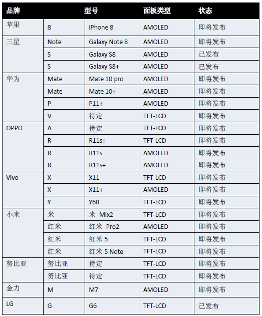 3)最后,柔性基板的機械應力非常小,異形切割難度小,速度快,良率高。在異形切割方面,相比LCD和硬屏OLED有天生的優(yōu)勢。隨著國內(nèi)京東方,和輝光電、維信諾,天馬AMOLED技術(shù)的逐漸成熟,AMOLED在全面屏領域的市占率將呈現(xiàn)穩(wěn)步上升的態(tài)勢