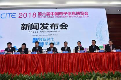 2017年11月17日上午,工業(yè)和信息化部與深圳市人民政府在深圳召開新聞發(fā)布會(huì),決定于2018年4月9日至11日在深圳會(huì)展中心共同舉辦第六屆中國電子信息博覽會(huì)(CITE 2018)。