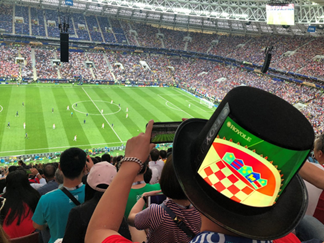 今夏火熱的2018俄羅斯世界杯上,柔宇科技自主研發(fā)的全球首款高清柔性屏禮帽首次亮相,禮帽中鑲嵌的高清全柔性顯示屏滾動(dòng)播放著球賽相關(guān)信息,科技感十足。