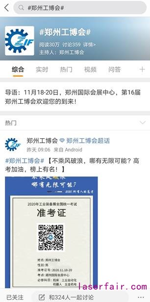 鄭州工博會(huì)新浪微博主做話題運(yùn)營(yíng),#鄭州工博會(huì)# 話題目前總閱讀量30萬(wàn),文章總覆蓋人群達(dá)50萬(wàn),#鄭州工博會(huì)# 超級(jí)話題社群也已經(jīng)創(chuàng)建完成,將獲得更大曝光量、更精準(zhǔn)的互動(dòng)交流渠道......